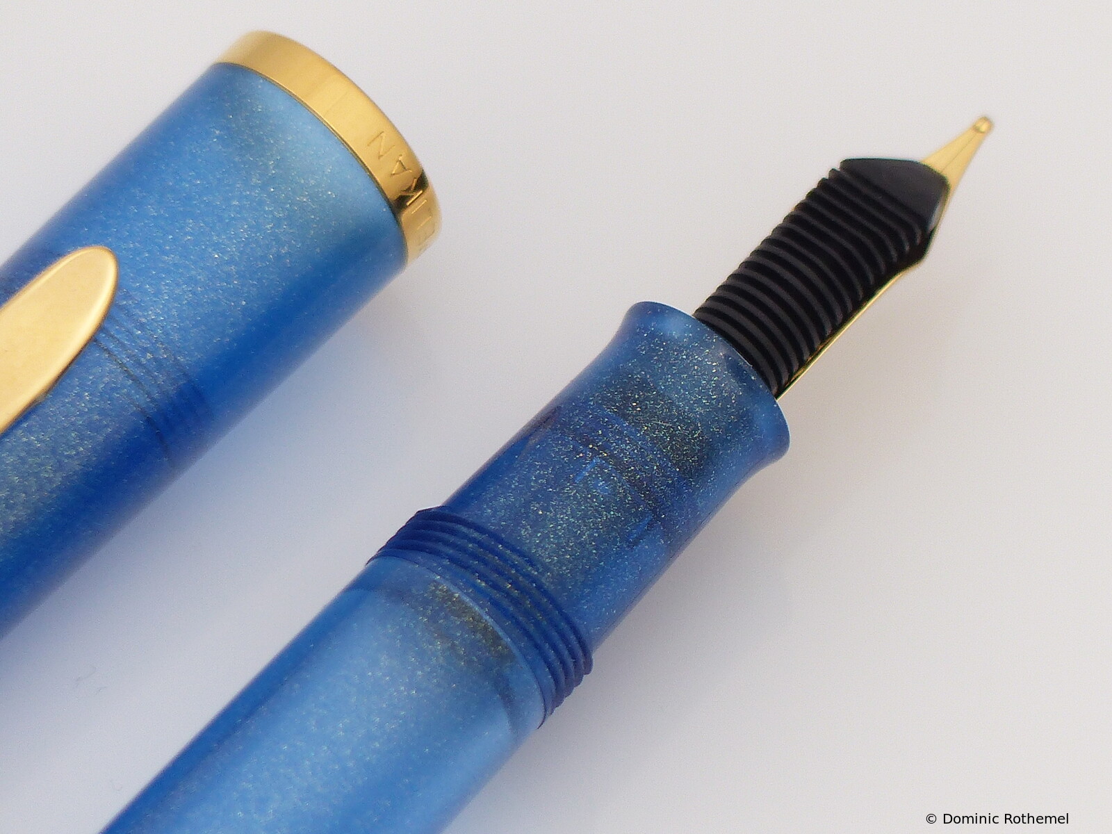 These cap inserts are identical to those of the M400 series, which are decorated with the logo and are held by a golden crown (clip ring). Since the M481 is the cheap version of the M400, he got the insignificant cap (the blind cap) instead of the golden crown, the logo disappeared. Later on, the M200 had the Pelikan logo on the cap. Initially it was screwed, later glued.