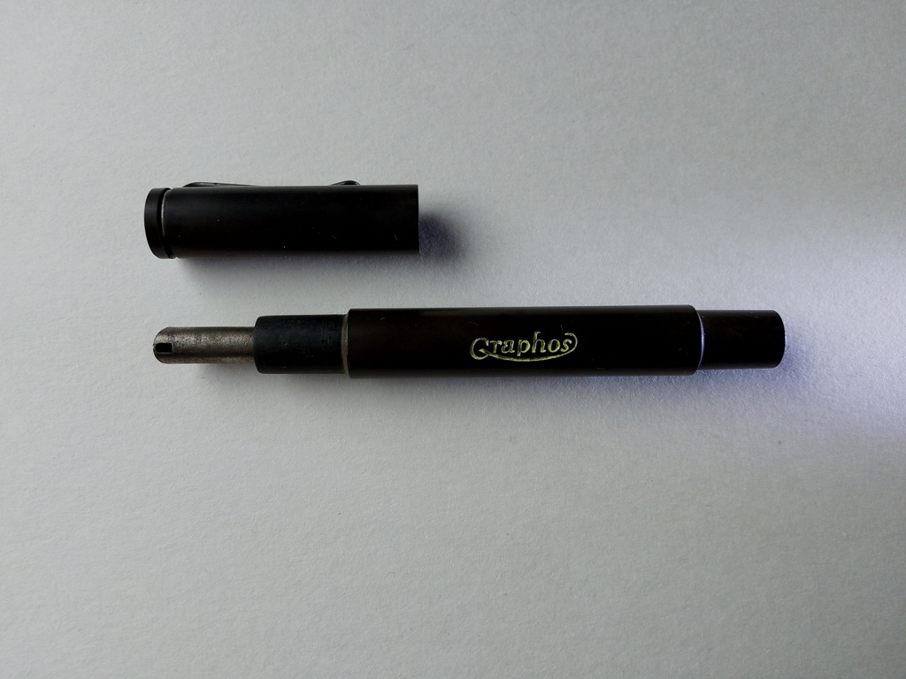 Previously unknown, old Graphos model. Referred to as Graphos “Mystery” by its owner. The cap is pushed on and not screwed on. made of hard rubber or ebonite.