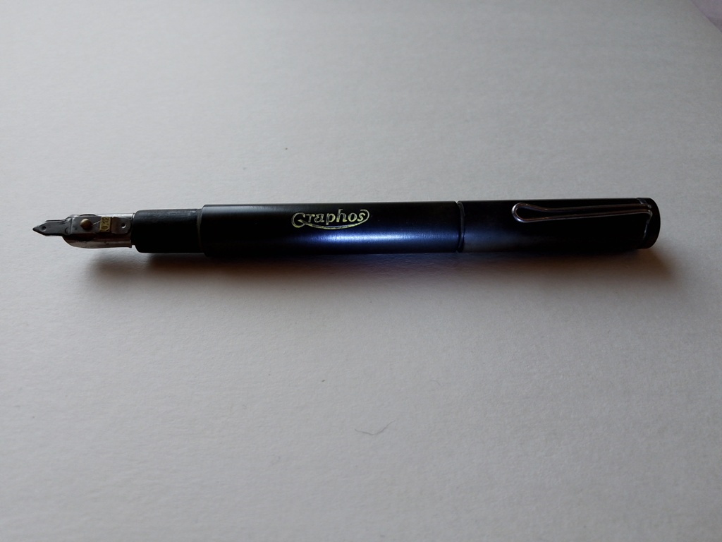 The rotring GRAPHOS was a further development of the Pelikan GRAPHOS. The grip can be separated from the long barrel. So it could now be screwed into a circular approach.