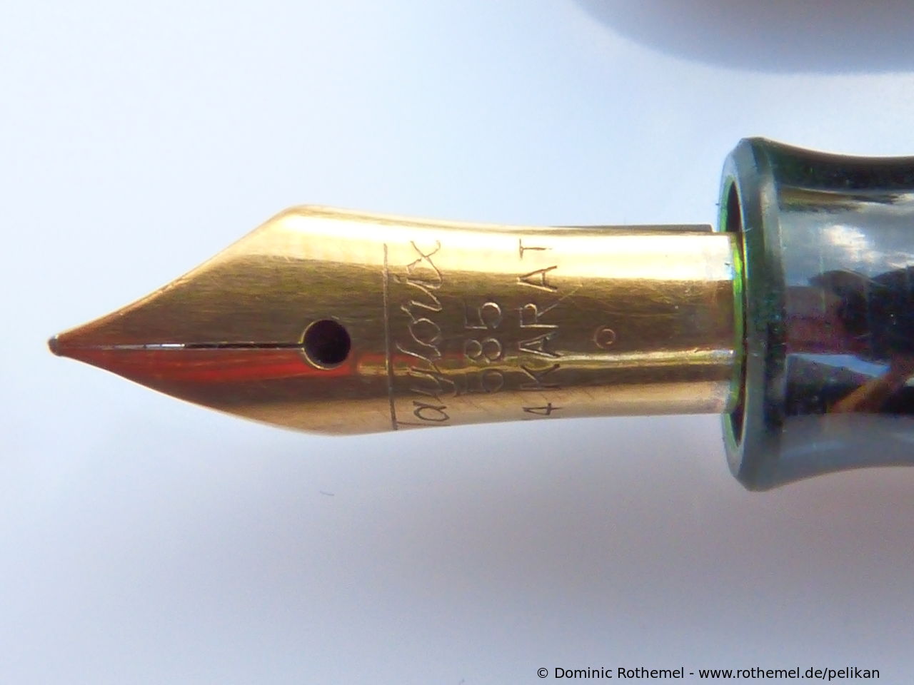 The Taylorix company was founded in 1922 in Stuttgart (Germany) as a distributor foraccounting needs. The Taylorix accounting system was originally developed for hand-write-carbon-copy accounts. Special carbon copy nibs for fountain pens were therefore necessary.Taylorix sold pens from different manufacturers under their own name. The term on the shaft, e.g. 6-G DF can decrypt as follows: