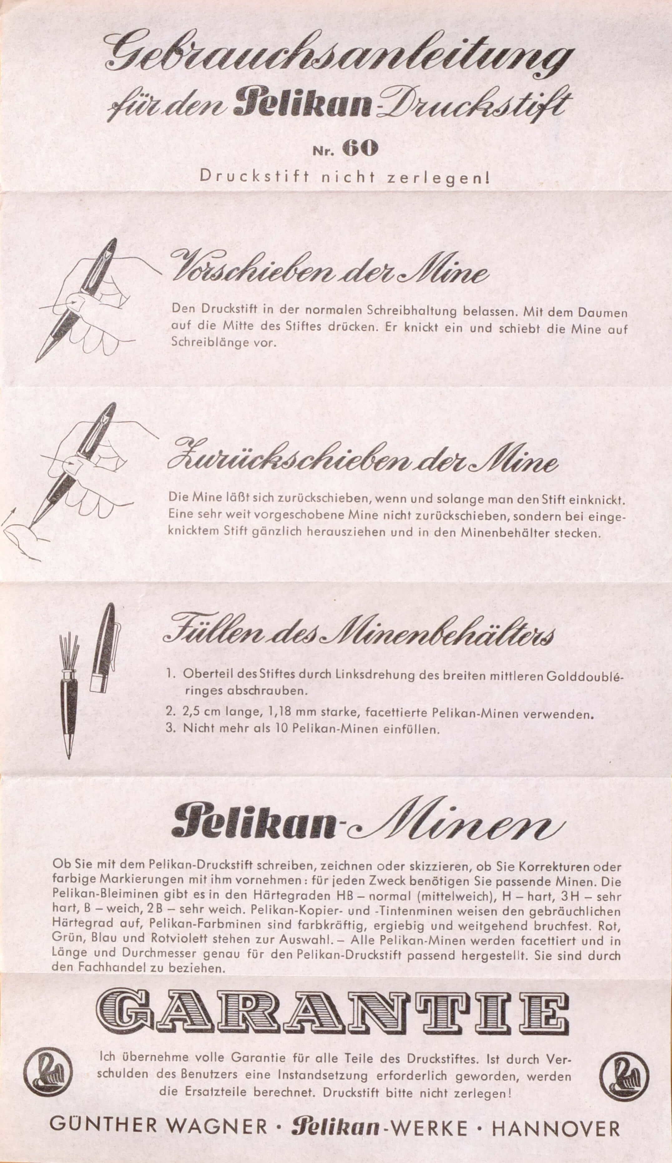 The dismantling and reassembling of this pencil has to be done in a defined order, therefore this guide was offered. It was found in the repair box shown above. Maybe it will help some users and collectors of this unique pencil.